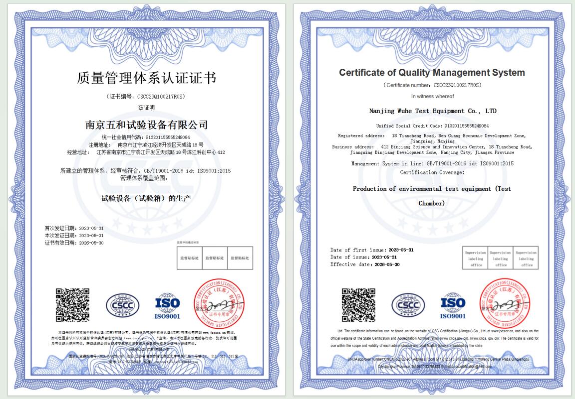 質(zhì)量管理體系認(rèn)證證書(shū)