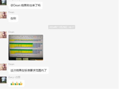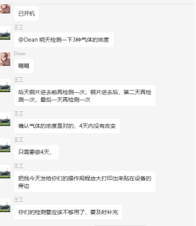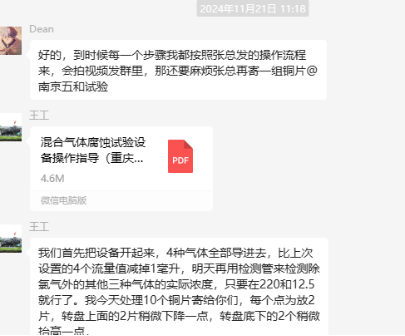 2024年8月份重慶******第三方檢測公司再次采購我司一臺型號為“WHQ-300B”型的混合氣體腐蝕試驗箱,設備被運送到客戶指定的場地安裝調試運行。客戶后期自行進行一次銅片增重試驗,起初試驗結果不是很理想,,試驗的流程和注意事項未了解透徹,我司針對以上信息,整理了操作指導作業(yè)書進行幫助理解;通過理論知識和我司技術人員線上指導操作的配合,該增重試驗很成功。試驗結束之后客戶將數(shù)據(jù)發(fā)給我司,以下是客戶和我司聊天記錄以及客戶做的數(shù)據(jù)信息: